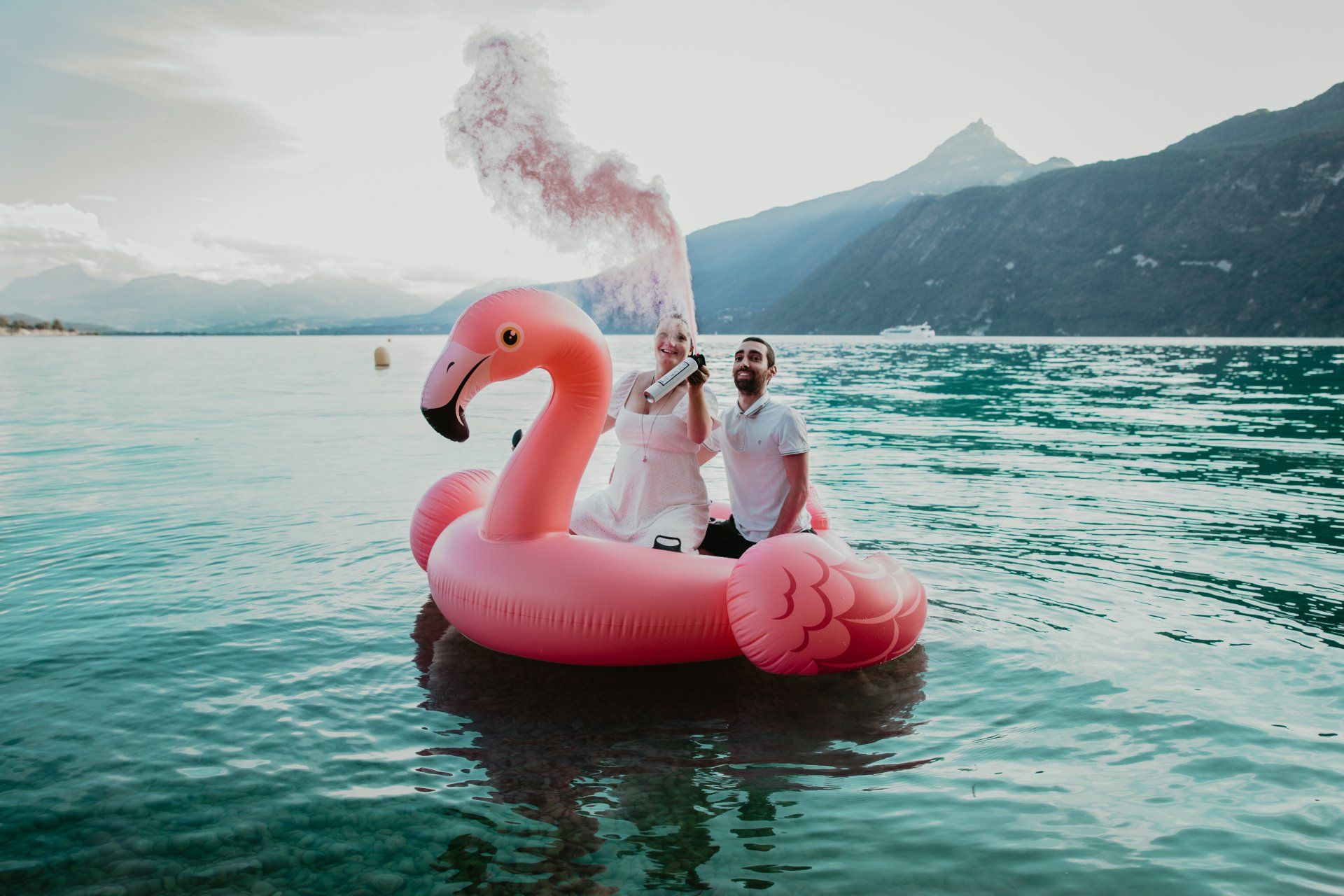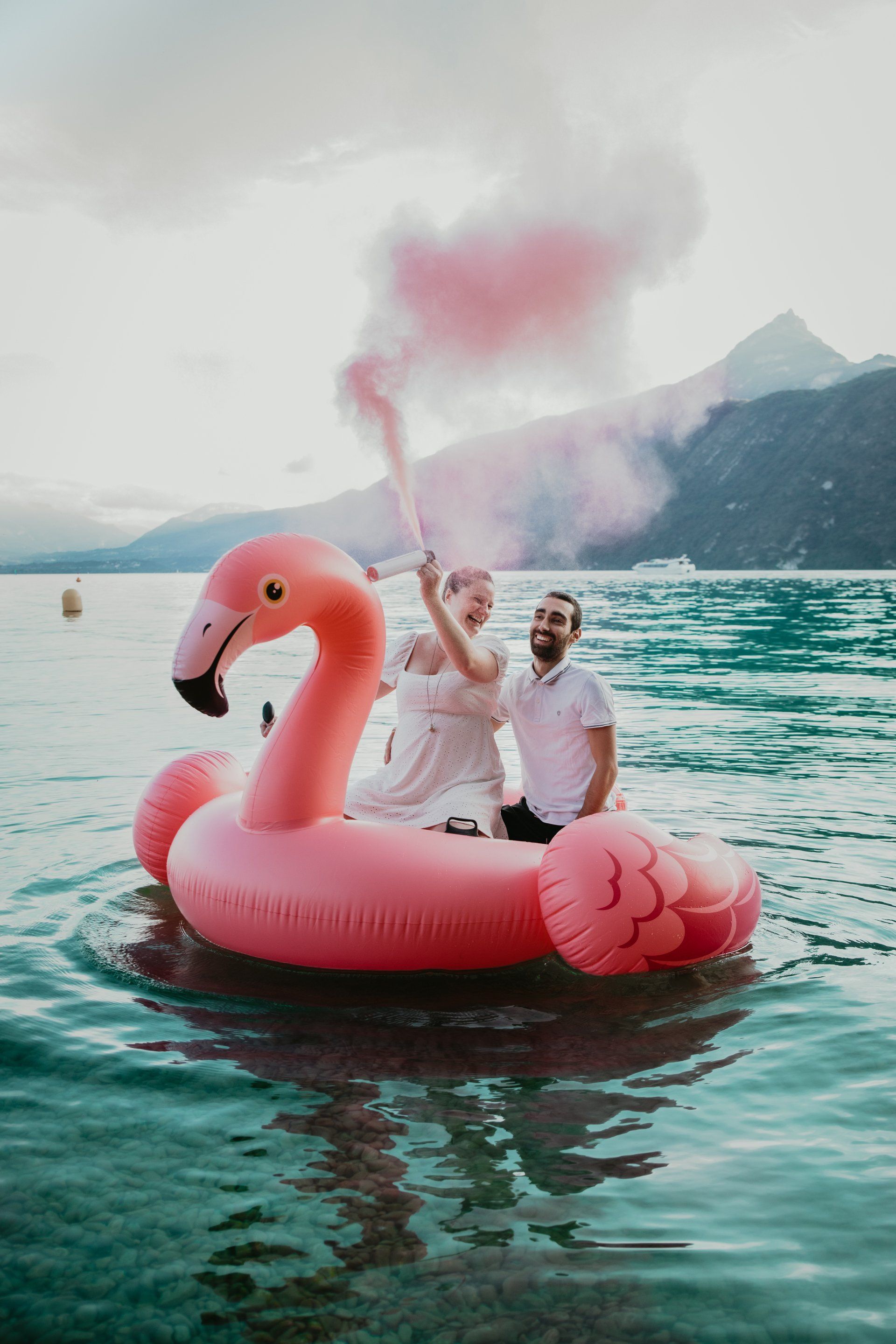 Gender reveal en Savoie, sur le lac du Bourget à Aix-les-Bains.
