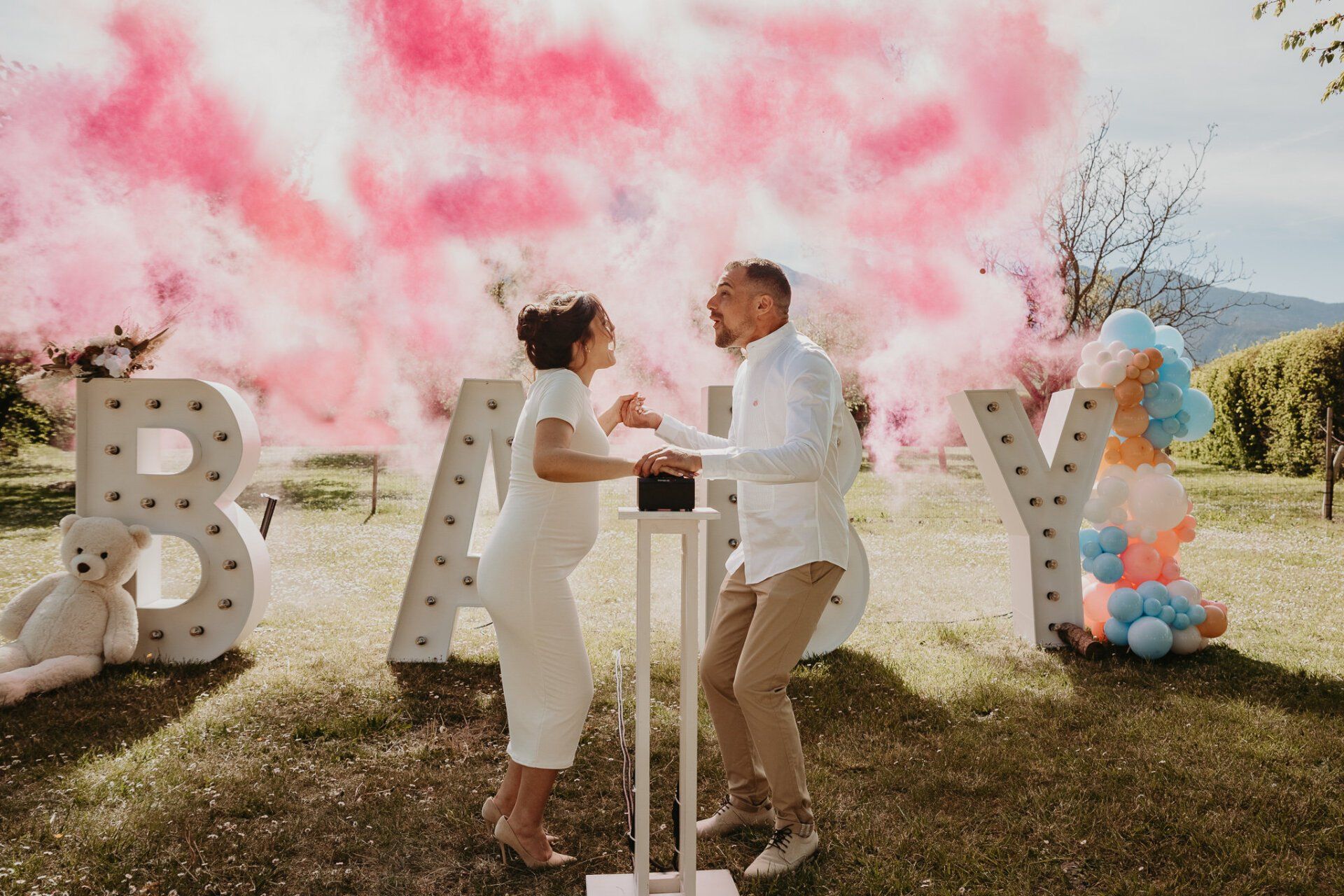 Gender reveal de Alissone et Benjamin au clos de florie, savoieen savoie